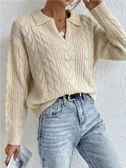 Свитер оверсайз удлиненный вязаный поло