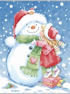 Салфетки бум. новогодний принт снеговик с девочкой Art bouqu…