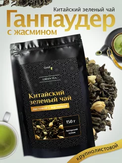 Чай зеленый китайский крупно листовой Ганпаудер с жасмином