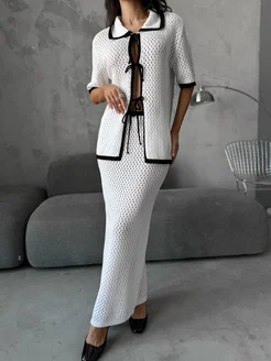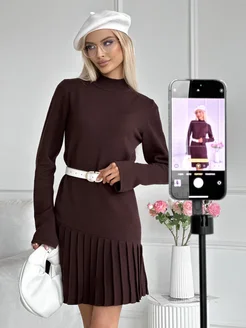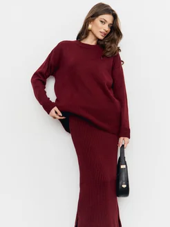 Вязаный костюм с юбкой оверсайз теплый зимний шерсть
