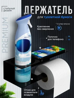 Держатель для туалетной бумаги с полочкой без сверления