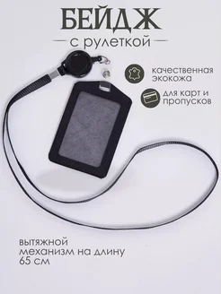 Бейдж чехол для пропуска и карт с рулеткой экокожа