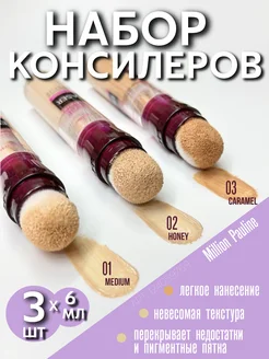 Набор консилеров корректоров с пуховкой для лица 3 шт