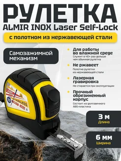 Рулетка с полотном из нержавеющей стали Laser Self-Lock