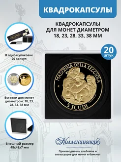 Квадрокапсулы для монет 18, 23 28, 33, 38 мм (чёрные)