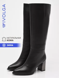 Сапоги женские зимние кожаные на каблуке