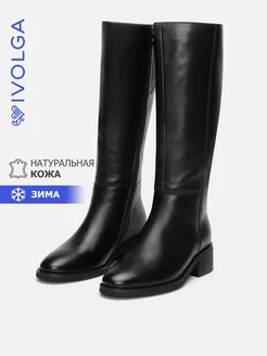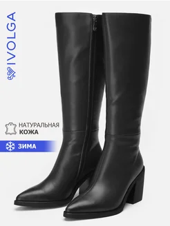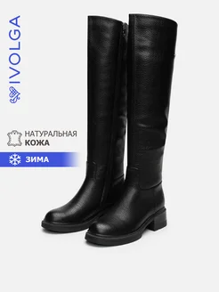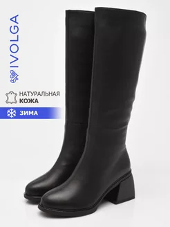 Сапоги с широким голенищем зимние кожаные на каблуке