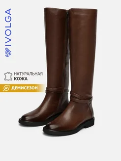 Ботфорты демисезонные из натуральной кожи коричневые
