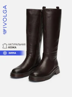 Ботфорты зимние с широким голенищем на низком каблуке