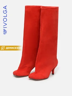 Сапоги трубы демисезонные таби велюровые красные