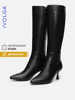 Сапоги высокие на каблуке демисезонные из натуральной кожи