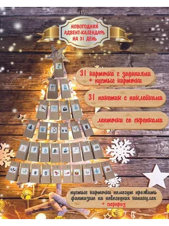 Адвент Календарь Новогодний на 31 день + задания и наклейки