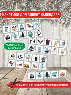 Наклейки для адвент календаря 35 штук, подарок на Новый год