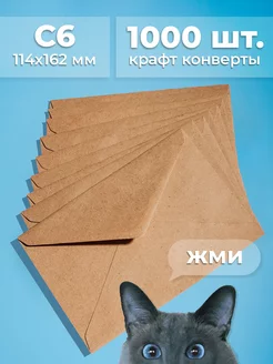 Крафтовые конверты С6 (114х162 мм) 1000 шт бумажные крафт а6