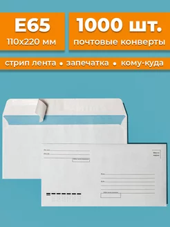 Почтовые конверты бумажные Е65 (110х220мм) 1000 шт кому-куда