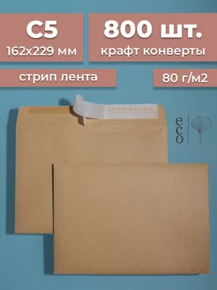 Крафтовые конверты С5 162х229 мм 800 шт бумажные стрип лента