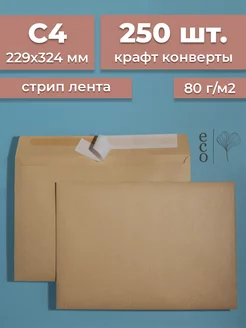 Крафтовые конверты А4 229х324 мм 250 шт бумажные стрип лента