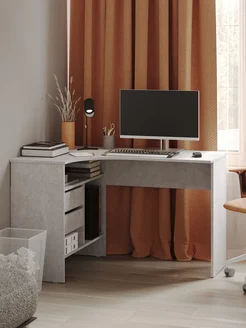 Стол письменный компьютерный с ящиками и полками угловой