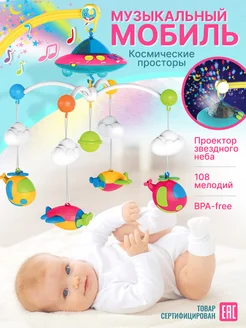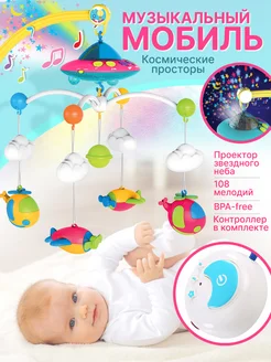 Музыкальный мобиль с проектором в кроватку для новорожденных