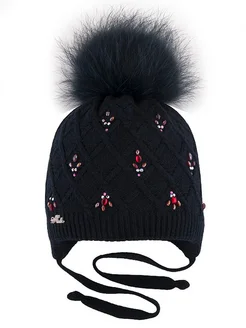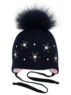 Шапка с помпоном на подкладке с утеплителем, завязки