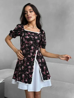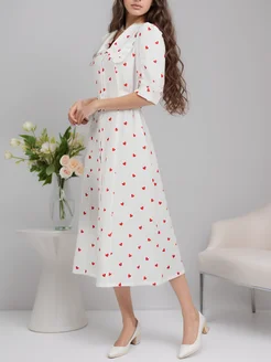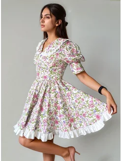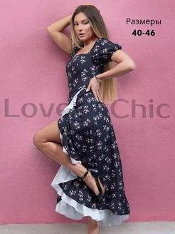 Платье крестьянка летнее вечернее с разрезом и воланами