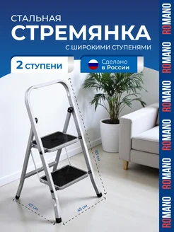 Стремянка стальная с широкими ступенями 2 для дома и дачи