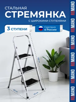 Стремянка стальная с широкими ступенями 3 для дома и дачи