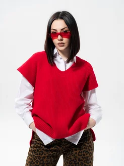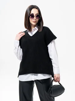 Жилет вязаный оверсайз безрукавка трикотажная школьная