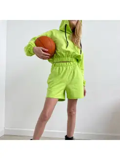Шорты из футера с поясом с высокой талией трикотажные