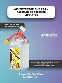 Аккумулятор 22.2V 1550mAh 6S 100 200C LiPo XT60