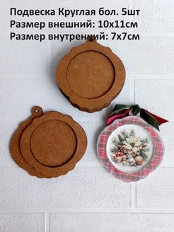 Заготовка Подвеска Круглая бол. 10х11см. 5 шт. для декупажа