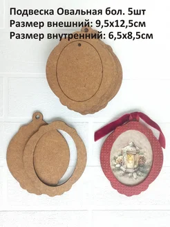 Заготовка Подвеска Овальная бол. 9,5х12,5см 5шт для декупажа