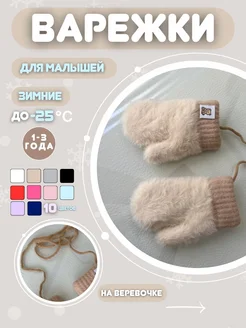 Зимние варежки для малышей нетеряшки на веревочках с мехом