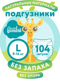 Подгузники 4 размер L 9-14 кг GIRAFFE Classic 104шт МЕГАПАК