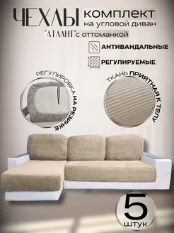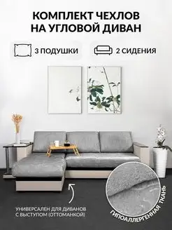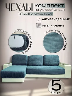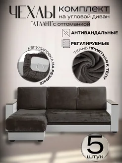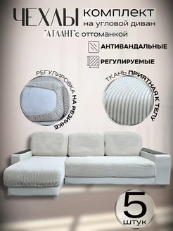 Комплект чехлов на угловой диван Г с оттоманкой, на резинке