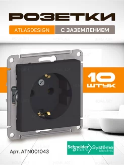 Одинарная розетка с заземлением Шнайдер Atlas Design 10шт