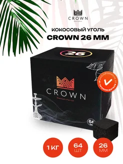Уголь для кальяна кокосовый CROWN Краун 1 кг, 64шт, 26мм