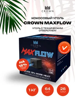 Уголь для кальяна кокосовый CROWN Краун MaxFlow 1кг64шт26мм