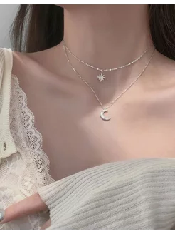 Цепочка на шею подвеска звезда и луна ожерелье колье