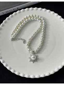 Цепочка на шею женская подвеска колье ожерелье с жемчугом