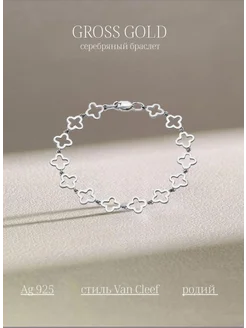 Серебряный браслет на запястье Ван Клиф без вставок