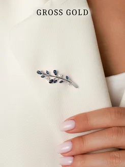 Серебряная брошь с синими камнями Веточка