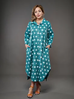 Итальянское расклешенное дизайнерское платье в горох, хлопок