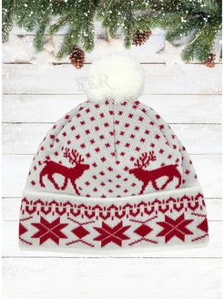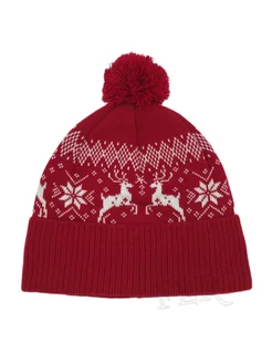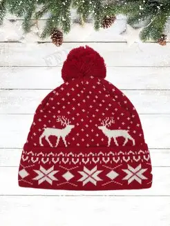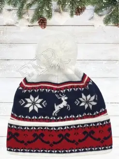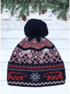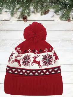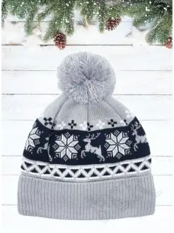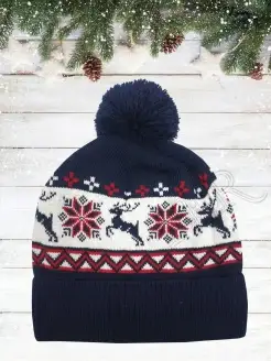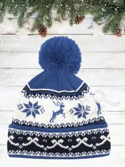 Шапка с помпоном и зимними узорами