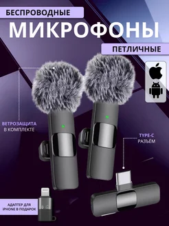 Микрофон петличный беспроводной для видеосъемки и подкастов