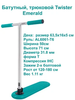 Батутный трюковой самокат Twister Emerald