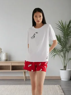 Пижама с шортами и футболкой хлопок
