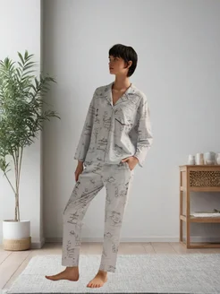Пижама женская с брюками и рубашкой