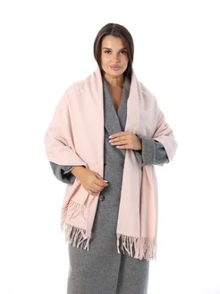 Палантин розовый однотонный на голову теплый зимний