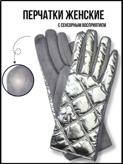 Перчатки серебристые теплые сенсорные